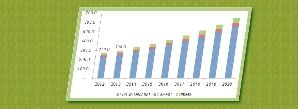 Global furfural market demand was 300 kilo tons in 2013 and is expected to reach 652.5 kilo tons by 2020, growing at a CAGR of 11.9% from 2014 to 2020. China emerged as the leading regional market for furfural and accounted for 72.6% of total market volume in 2013.