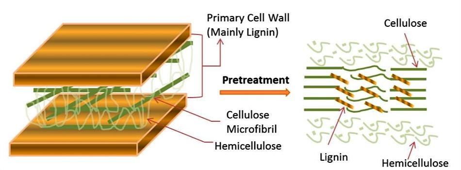 Most biorefineries define "the purpose of pretreatment is to destroy the structure of cellulosic biomass plant cell walls and make cellulose more accessible to the subsequent process"[1]. A variety of schemes have been developed, but none of them specifically targets the recovery of the hemicelluose (and the lignins) at that stage. In contrast, DalinYebo's sole interest is the conversion of the pentosans, i.e. the majority of the hemicelluloses, into value added chemicals, thus removing them from the biomass. The resulting residue is then available for upstream processing and can be conditioned for specific applications.